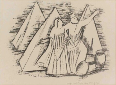 Nel 1942 realizza 11 disegni preparatori – tutti in mostra – del Viaggio d’Europa per l’illustrazione dell’omonimo racconto di Massimo Bontempelli.